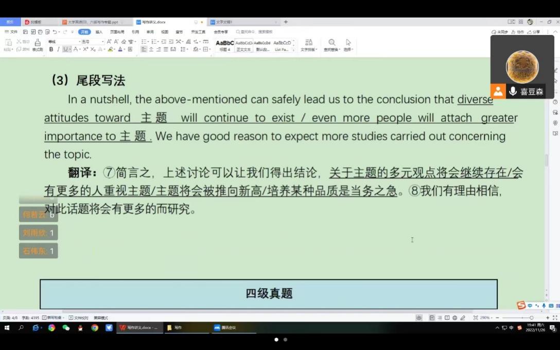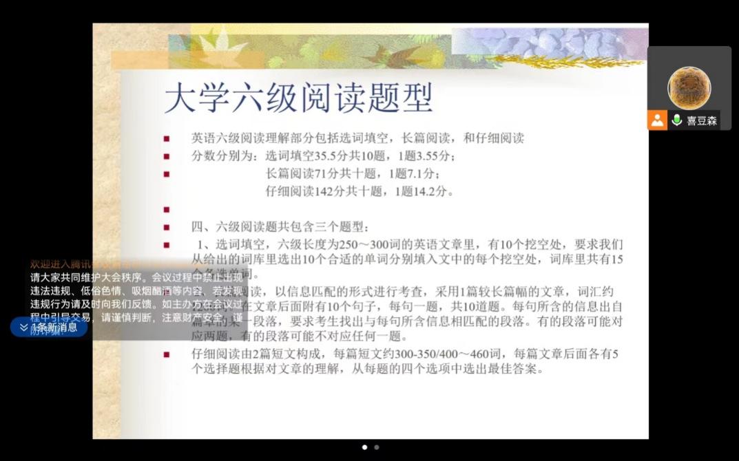 学生会学业提升之四六级系列讲座的第四讲于11月26日晚六点至八点于线上顺利开展。