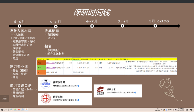 嘉宾介绍后进入主要的经验分享环节。首先邹蕴师姐从总体上讲述了保研的前期条件,分享了“直博准备”以及“吉大推免”经验,鼓励同学们尽早选择,尽早决定。
