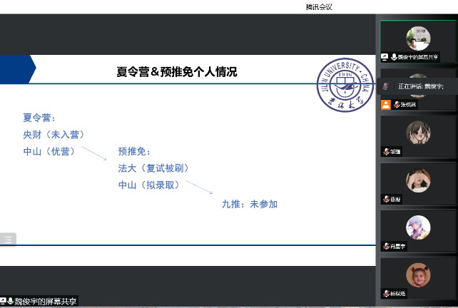学生会主办的保研经验分享会在线上如期举行。本次分享会邀请到了五位成功保研的师兄师姐,分享自己的成功保研经验,为同学们之后的学习之路提供借鉴。