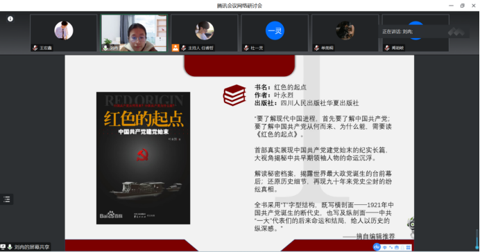 公共外交学院的刘冉同学通过回顾书中的主要内容和背后的时代故事向同学们分享了自己的心得体会。她认为,作为青年大学生,我们要铭记党的历史,明确自己的奋斗目标,用党在百年奋斗中形成的伟大精神滋养自己、激励自己,以昂扬的精神状态做好本职工作,努力学习,要争取能够努力创造无愧于党、无愧于人民、无愧于时代的业绩,为中华民族伟大复兴做出当代青年的贡献。
