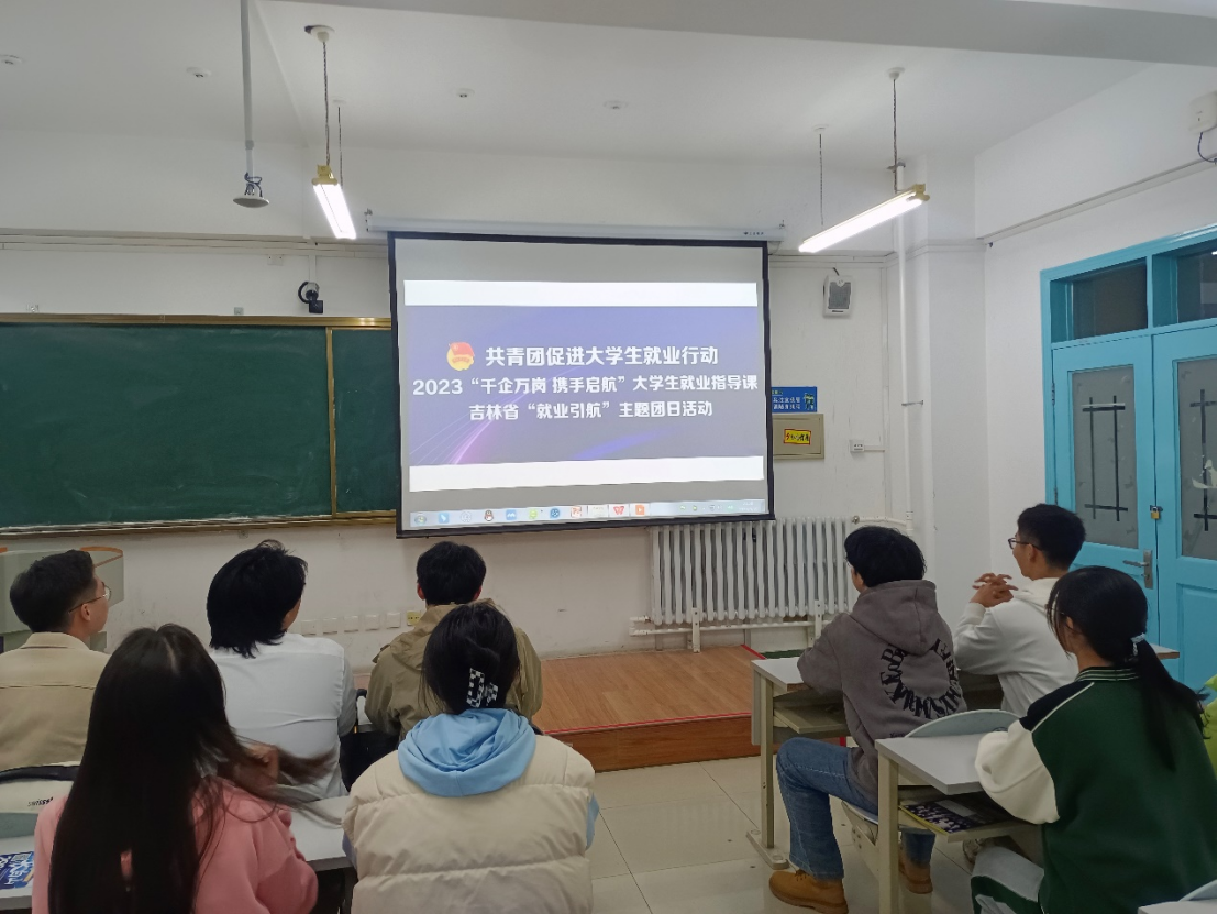 团委组织各年级各团支部分别以集体学习和个人学习的方式,收听收看2023“千企万岗,携手启航”大学生就业指导课,并在此基础之上开展“就业引航”主题团日活动。