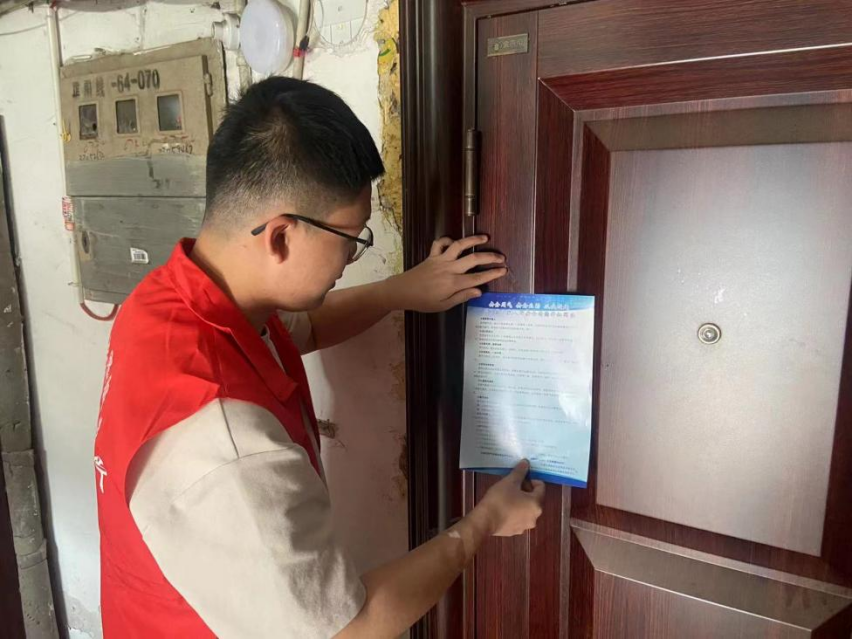 志愿者同学们迅速分工、入户进门,将宣传制品及时送到每位居民手中。上楼下楼的攀爬过程,挥洒的是哲社青年的汗水,收获的是哲社青年的感动,彰显的是哲社青年洋溢的劳动热情!