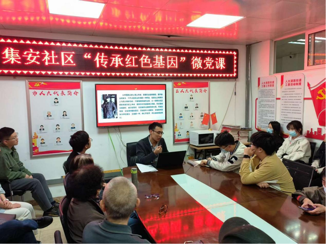 团委组织学生党员、共青团员们走进集安社区,共同组织开展了“弘扬革命精神,传承红色基因”主题党课团课学习活动。