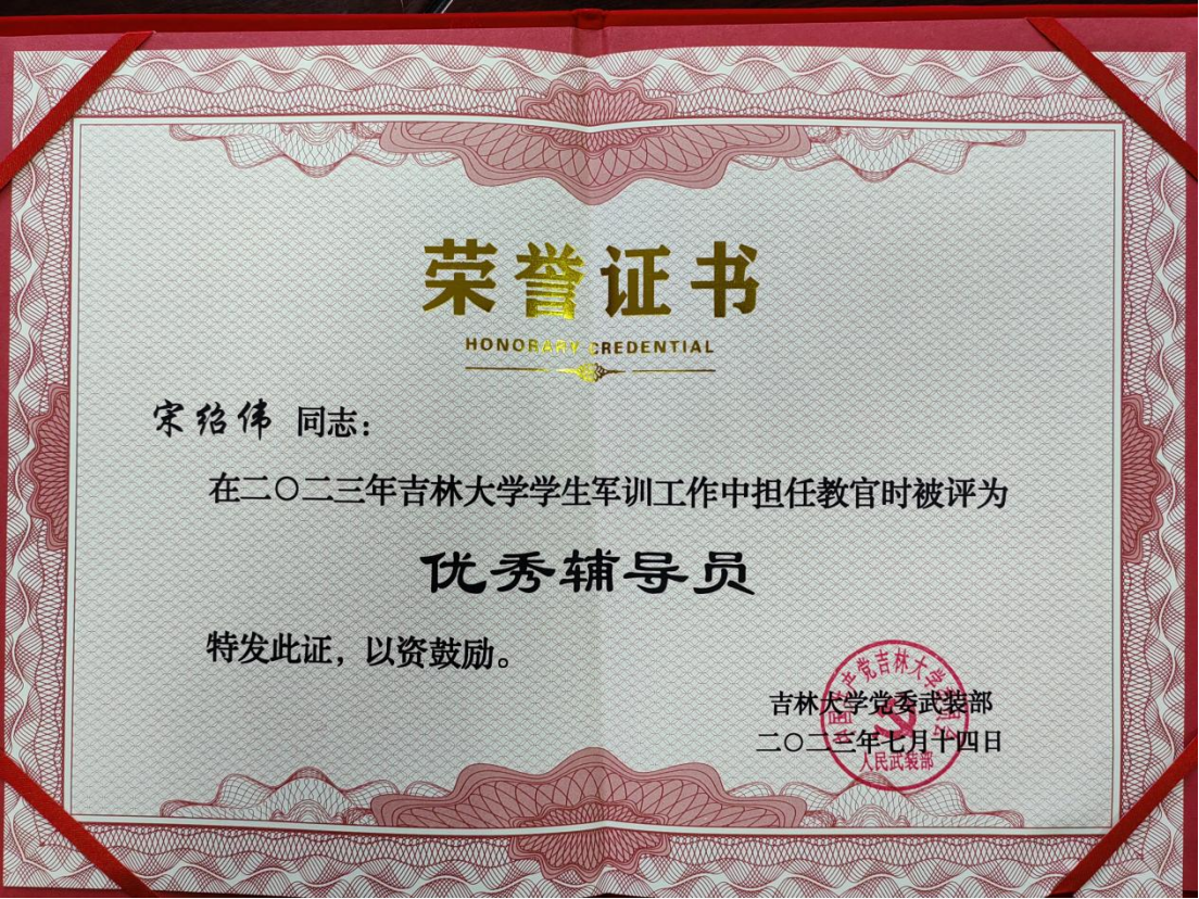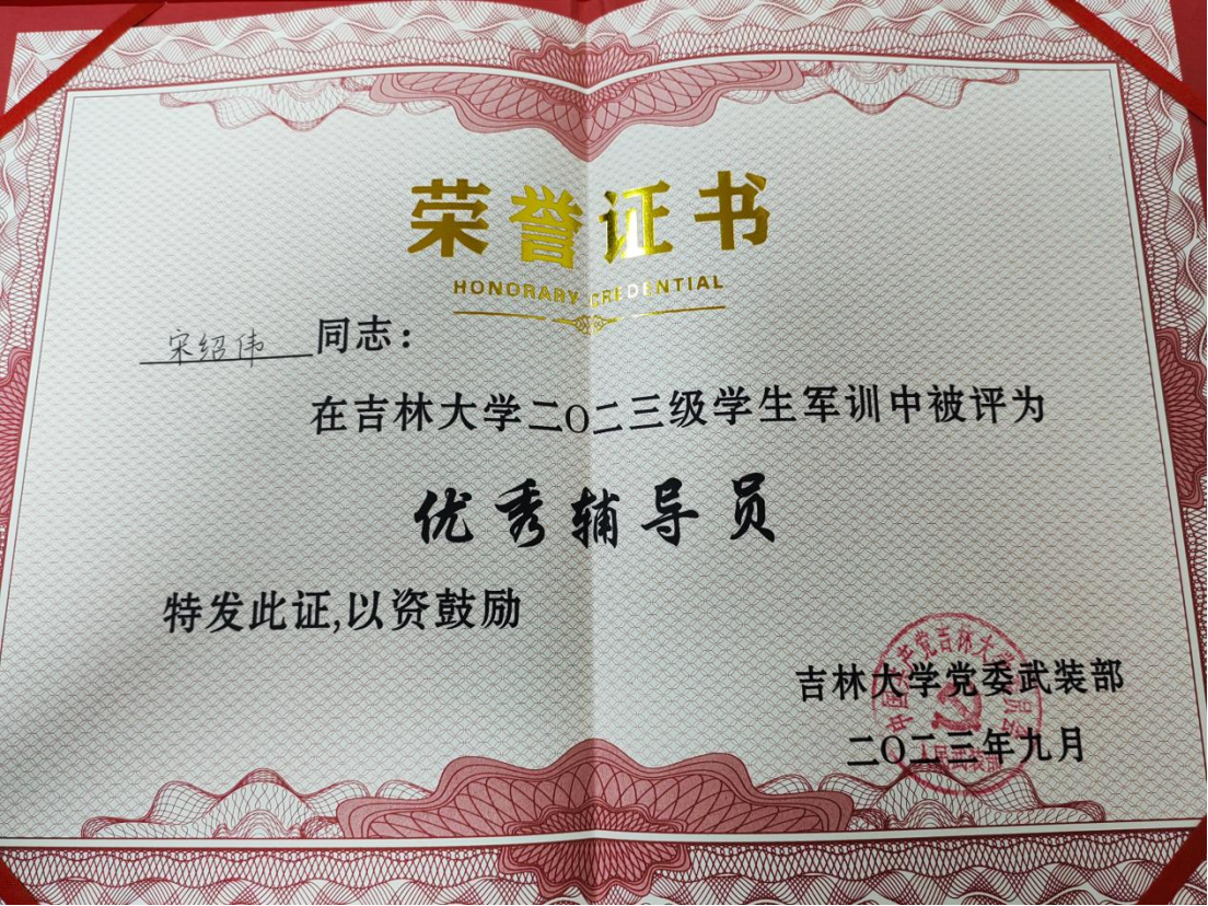 辅导员宋绍伟老师连续两次获得军训优秀辅导员!