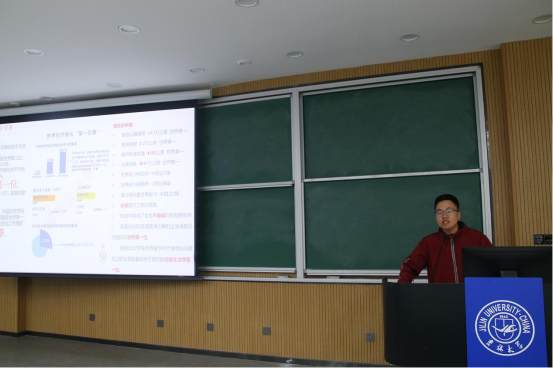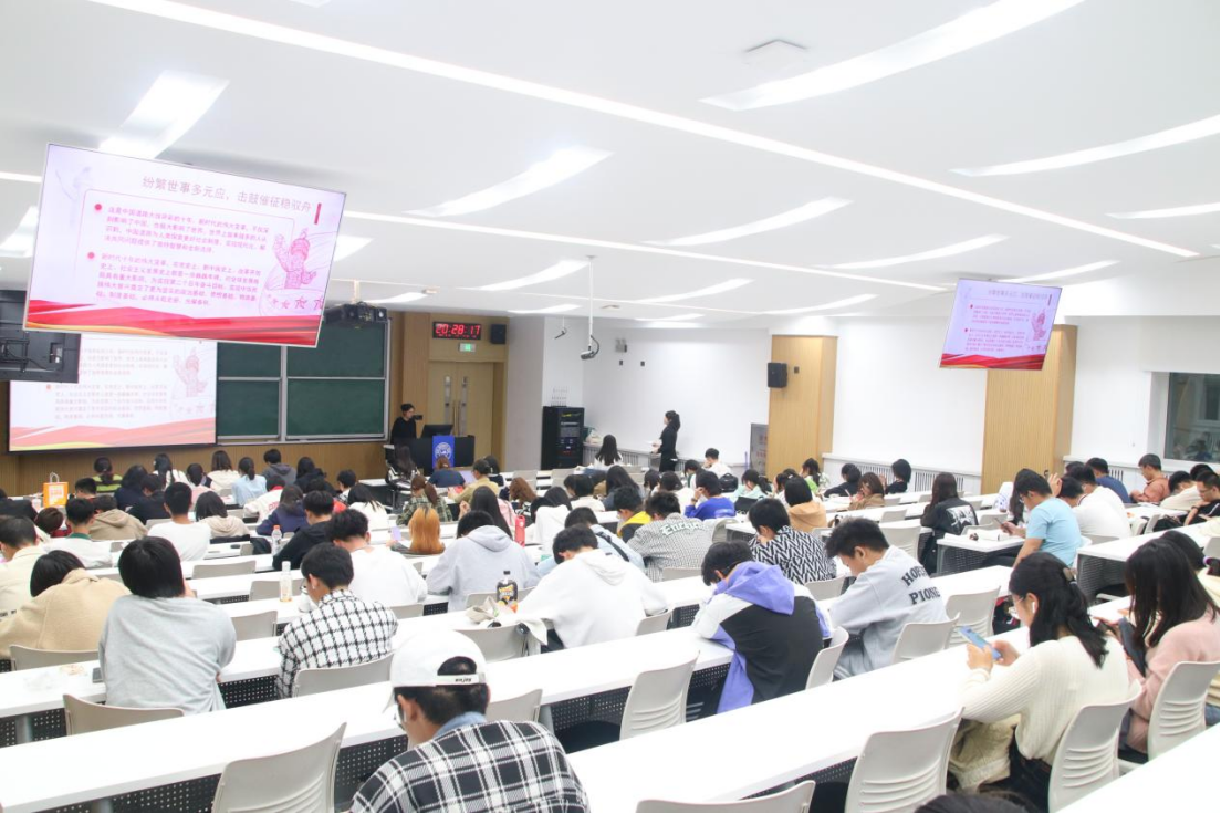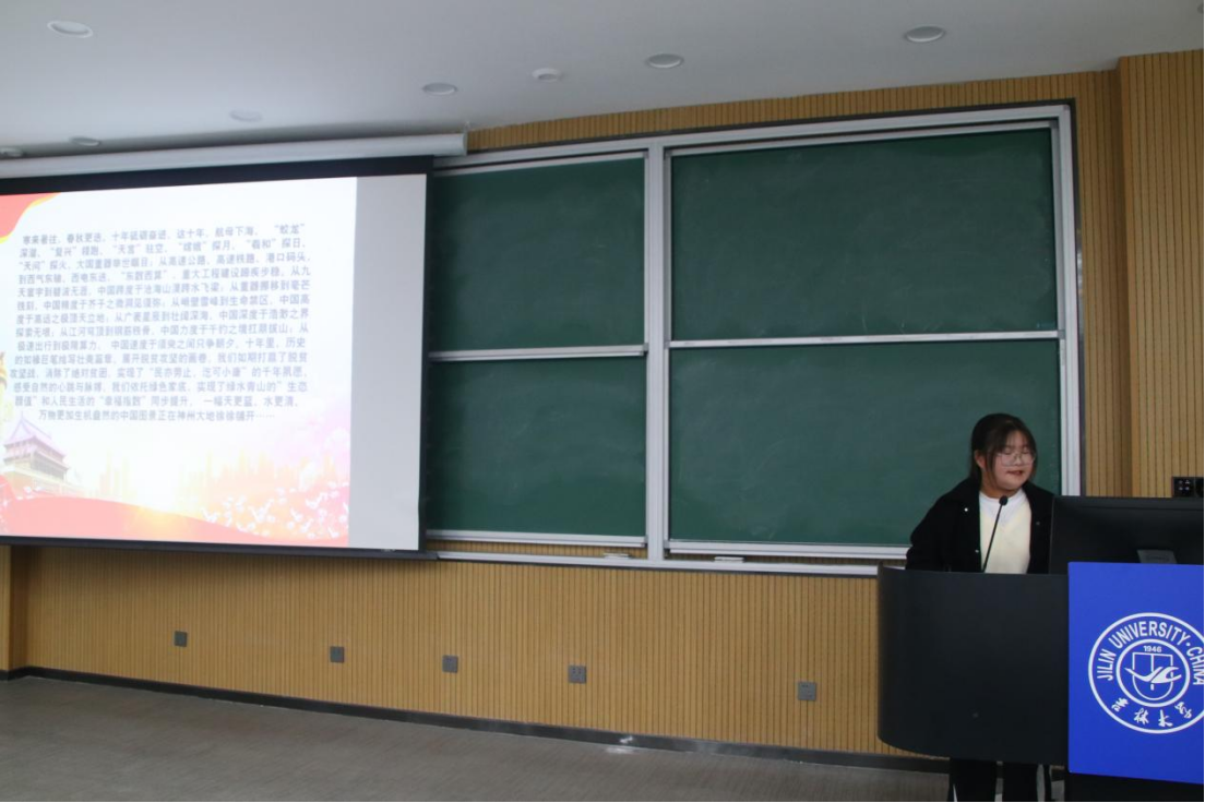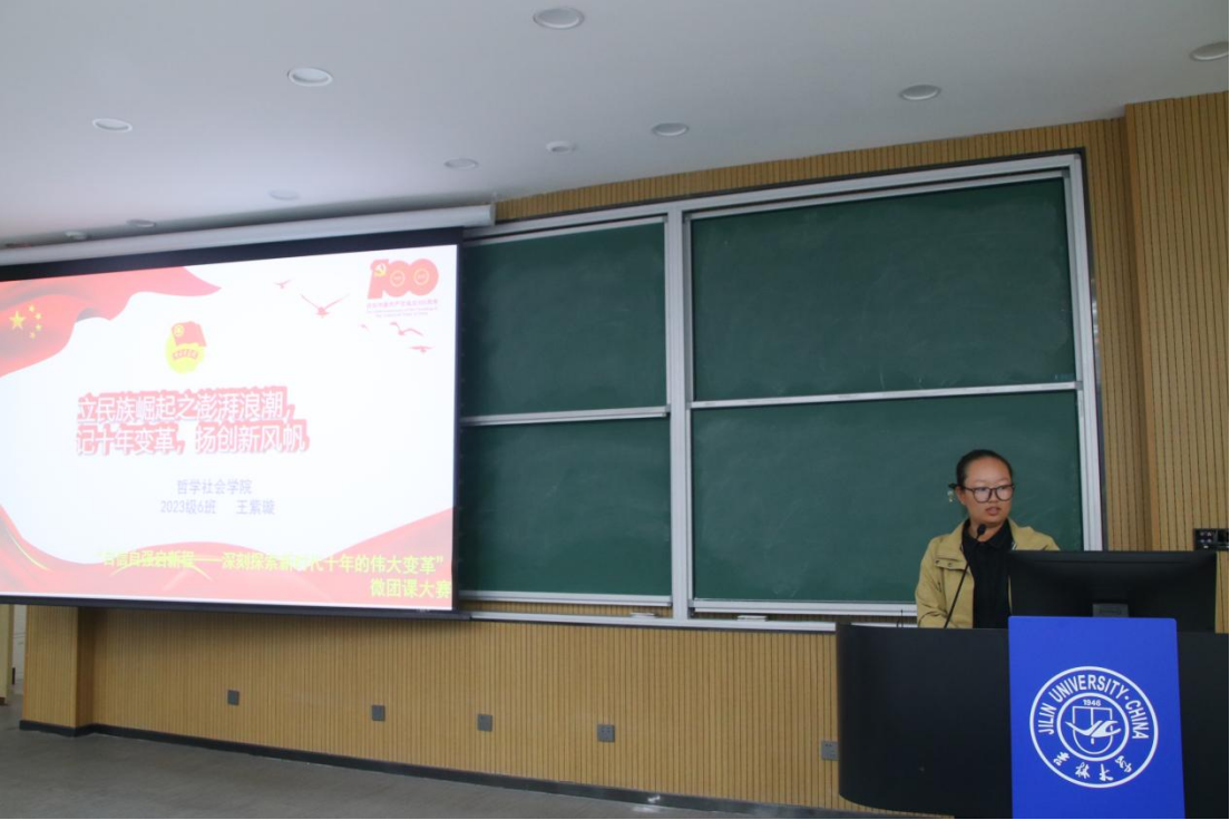 在青春激扬的音乐声中,主持人向大家生动讲述了新时代十年,我们经历了对党和人民事业具有重大现实意义和深远历史意义的三件大事,党和国家事业取得新的历史性成就、发生历史性变革,我国迈上全面建设社会主义国家新征程;广大团员、青年深入理解新时代十年伟大变革对于深化主题教育、开展自我教育具有重要意义。随后,主持人向大家介绍了本次比赛的各位评委,并对23级同学们的到来表示了热烈欢迎,至此微团课比赛正式拉开帷幕。