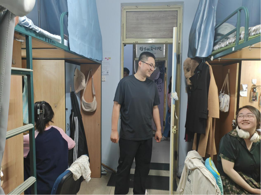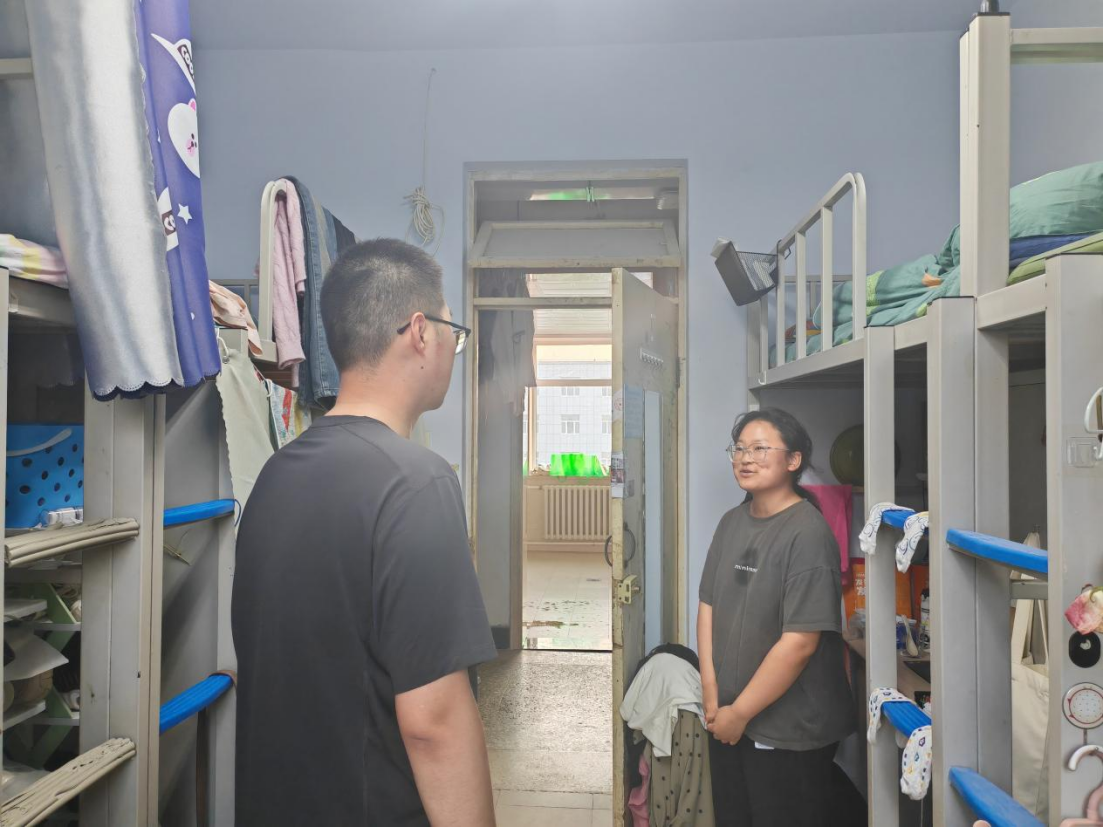 来到寝室,刘畅老师向同学们认真宣讲安全知识,提醒同学们严禁在寝室使用大功率违规电器,外出务必做到断电断水;严禁夜不归寝,不要留宿外人;面对接下来的端午节假期,刘老师要求同学们严格执行日常请销假和外出报备制度,务必同监护人互通信息,合理规划自己的外出行程,避免耽误有关课程。