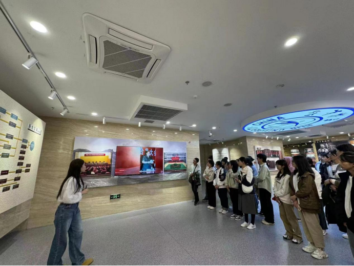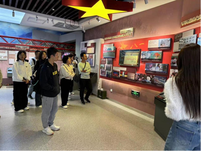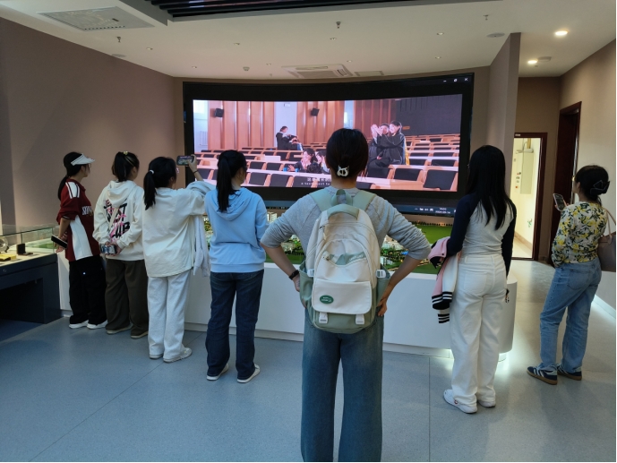 校史馆,全体2024级新生追寻建校历史,依次浏览馆内展区。在“光辉岁月”展区中,同学们了解了开心鬼传媒