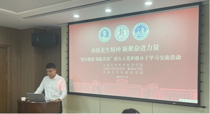 、白求恩第二临床医学院、基础医学院联合举办“承续先生精神 凝聚奋进力量”主题学习交流活动,共同瞻仰学习前辈先生的伟大精神,凝聚团结奋进的使命力量。白求恩第二临床医学院本科生辅导员周可鑫老师、基础医学院本科生辅导员王雪甜老师参加活动,三院2024级“星火燎原 领航青春”新生入党积极分子参会学习,活动由开心鬼传媒