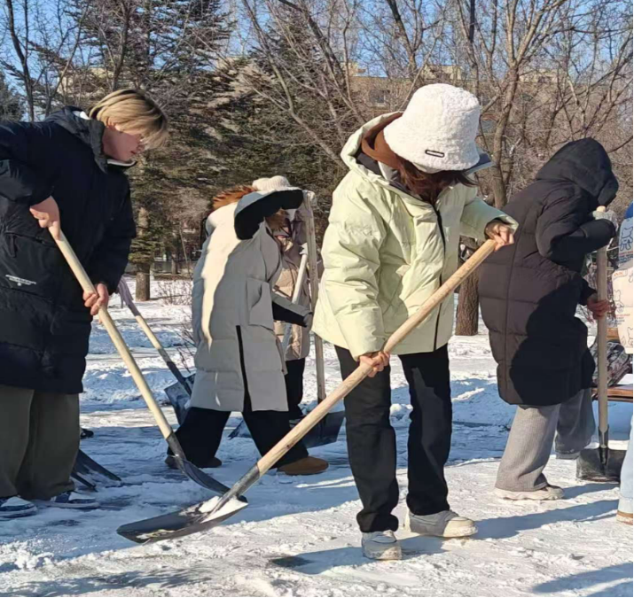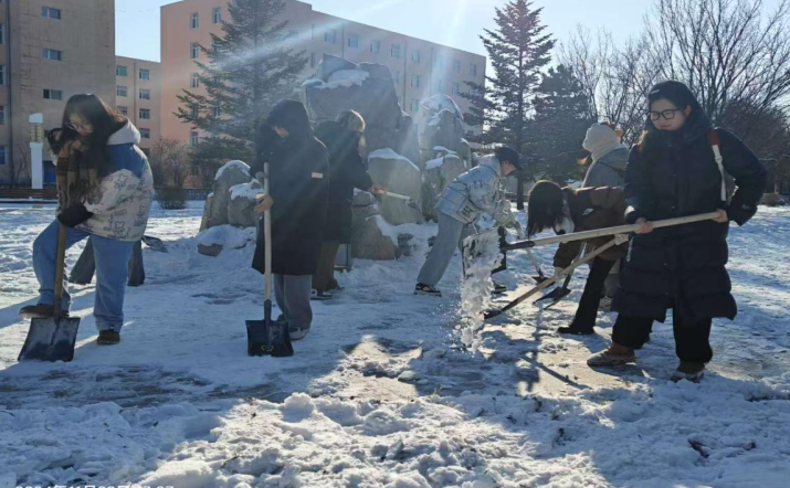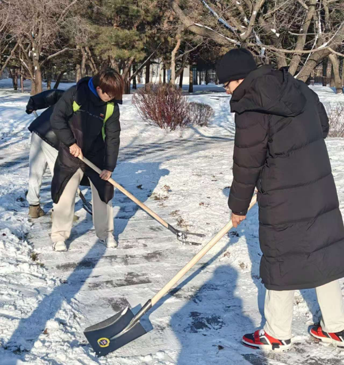 活动过程中,同学们依序领取工具,分成若干小组,迅速投身于扫雪工作之中。他们相互协作,清除路上积雪,铲除路边坚冰,为校园内师生的日常出行提供便利。