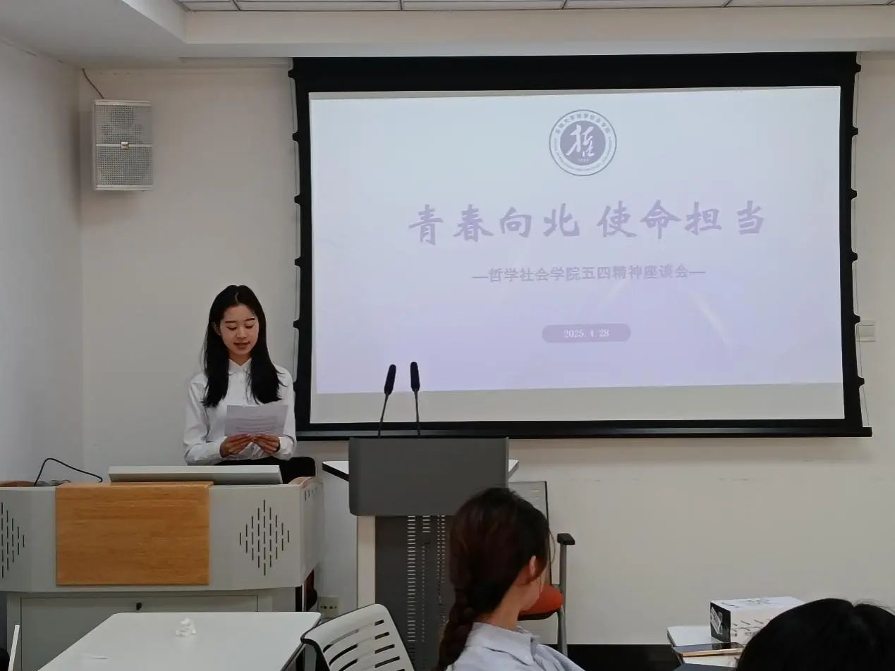 团委组织开展题为“青春向北,使命担当”的五四精神座谈会。本次活动由2024级本科生刘子灵主持,学院团委主要学生负责人、2024级各本科团支部干部和团员青年代表共同参与交流。