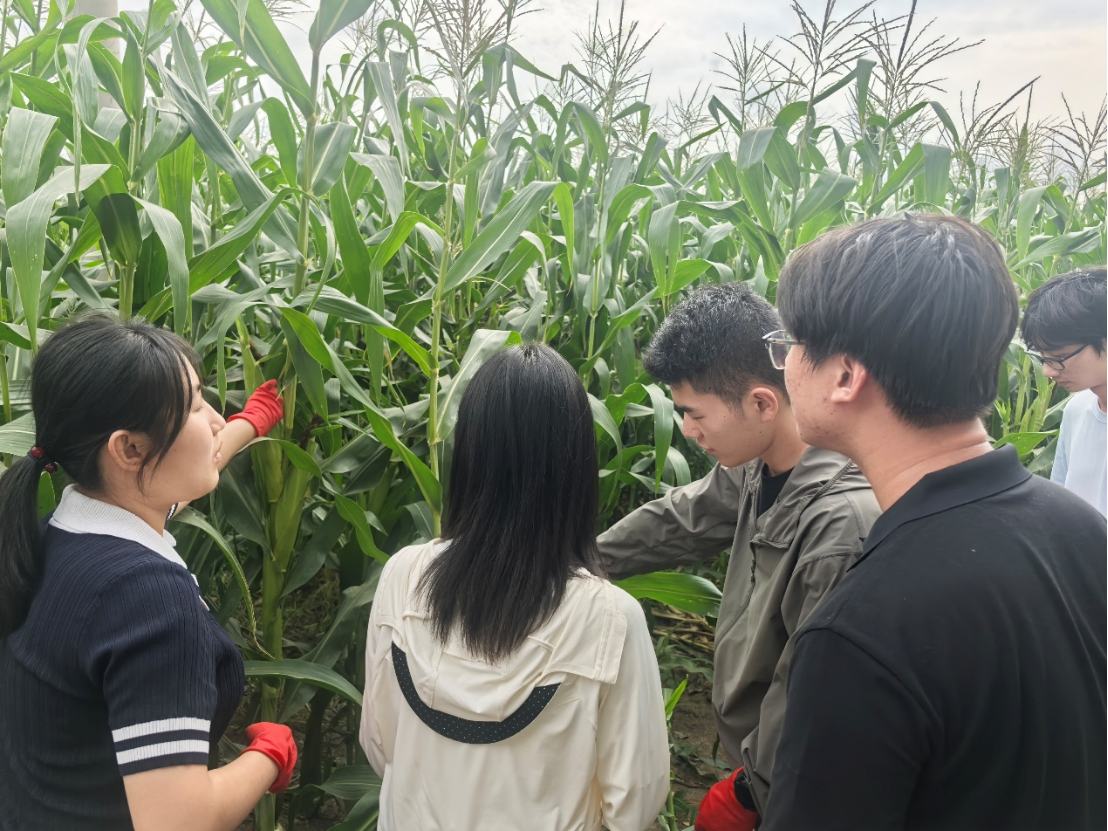 随后,团队去往季家村鲜食玉米厂的原料产地,将课堂搬到田间地头。实践团队走进玉米地,走入农民间,接地气、沾泥土、增见识、长才干,在乡土实践中深刻体悟何为“把论文写在大地上,把成果留在农民家”。