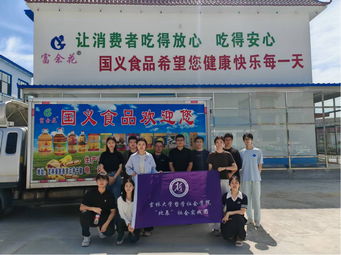 随后,团队转赴扶余市国义农产品购销有限公司,调研当地农产品花生的生产加工运输销售情况。讲解员围绕厂内主打的花生品牌发展、技术研发与花生的再加工深加工流程等方面进行了详细的讲解。同学们就国义农产品合作社“社企一体”,种植、加工、销售一条龙的经营模式进行深度调研,深入研讨了如何吸纳返乡大学生,扩展销售渠道,提升品牌知名度的问题。
