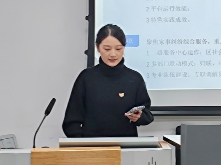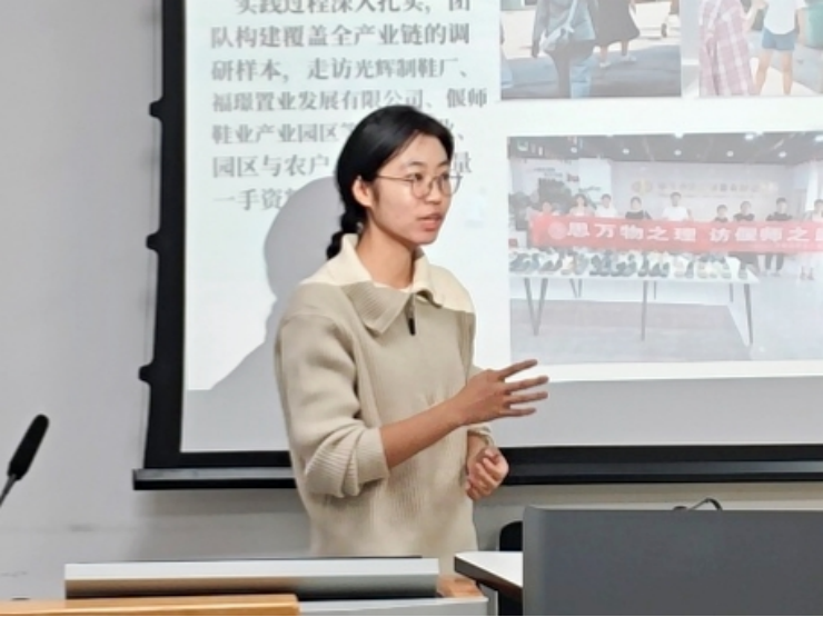 “北辰”社会实践团代表樊晶晶同学、“思行”社会实践团代表渠蓉芳同学和“家风”社会实践团代表张正轩同学聚焦专业所学知识,结合实践调研成果向在场师生进行汇报介绍,针对实践中存在的问题向大家进行梳理总结。