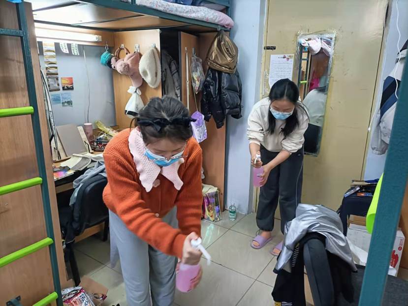 于2022年3月18-19日组织学生对宿舍进行通风、消毒工作,保持寝室整洁卫生,共抗新冠疫情。在疫情防控常态化和疫情形势严峻背景下,组织同学们对宿舍进行全方位消毒、保证日常通风习惯、环境整洁卫生对于加强同学们卫生防控、科学防控意识是十分必要、有效的。在寝室封闭期间,寝室是同学们生活和学习的场所,整洁卫生的生活环境、学习环境,有助于学生保持积极健康的心态、培养良好的生活习惯,保证同学们在疫情下也能完成学习任务,顺利度过疫情难关。开心鬼传媒