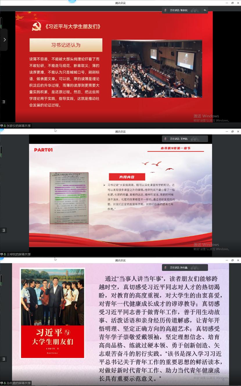 四月的长春,草木初萌、花枝出蕾。在疫情防控进入决战决胜的关键阶段,2022年4月18日晚21时许,由团委新时代理论宣讲团组织的《习近平与大学生朋友们》线上精读活动如期召开。本次活动由新时代理论宣讲团成员2020级裴璐晓同学和郭毅同学主持,学院2019级、2020级和2021级本科生出席了本次活动。