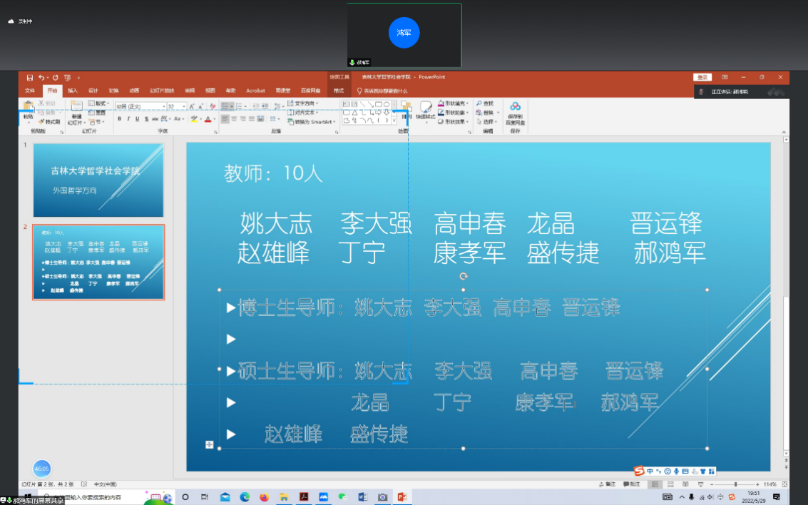 哲学系各位老师、学院党委副书记兼副院长刘培强老师以及2019级、2020级哲学专业的本科生参加了班会。班会有由本科生班主任哲学系田冠浩教授主持。