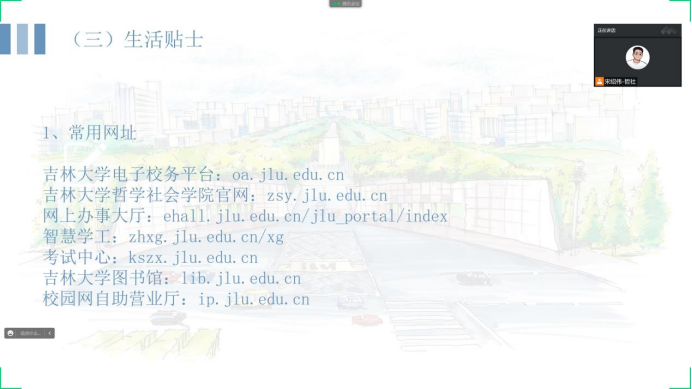 随后,宋老师向同学们分享了校内学习生活常用的网站网址和微信公众号,就即将到来的教学周提醒同学们调整状态、认真学习,积极备战接下来的各项考试。