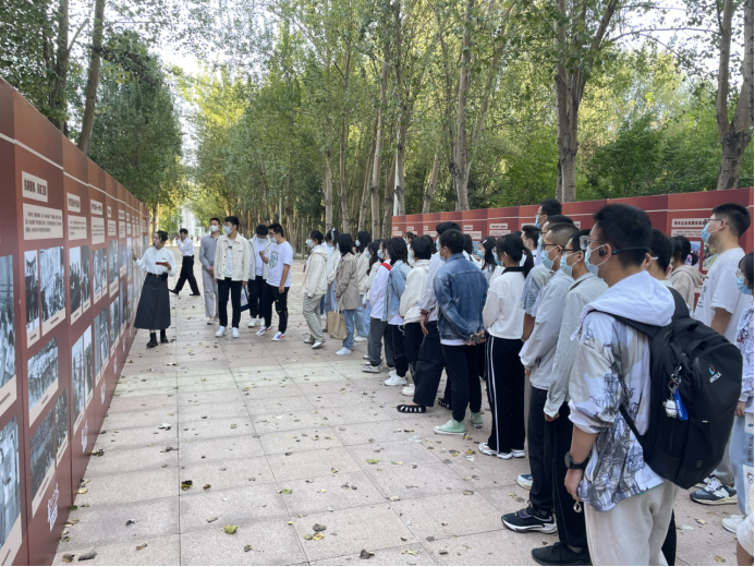 22级新同学来到了宋治平体育馆东侧长廊,重温党领导下的吉林青年运动光辉历程。