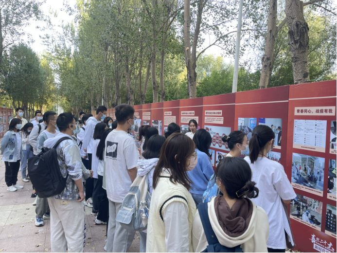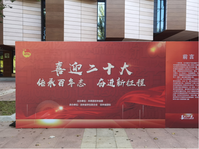 同学们在讲解员的引导下,有序地参观展板,聆听讲解。参观过程中,四位讲解员将吉林青年运动历史按照革命篇、建设篇、改革篇、新时代篇划分为四个阶段进行讲解,同学们认真倾听,不时使用手机对展板上的内容进行拍照留存,从一张张照片、一段段介绍中深切地感受到了广大青年对祖国和人民的赤子之心。