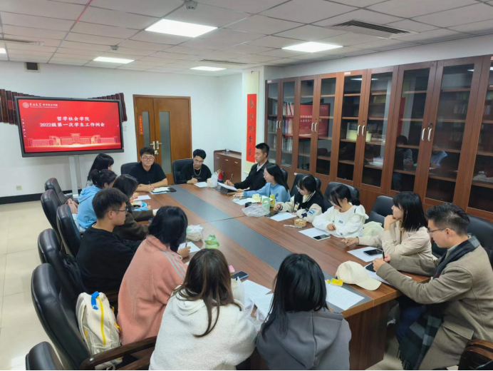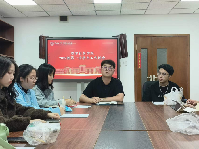 组织开展2022级第一次学生工作例会。本次会议由辅导员宋绍伟老师主持,22级本科生主要班级负责同学全部出席。
