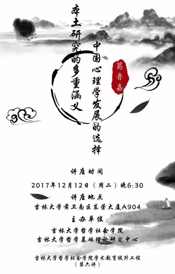 讲座题目:本土研究的多重涵义——中国心理学发展的选择