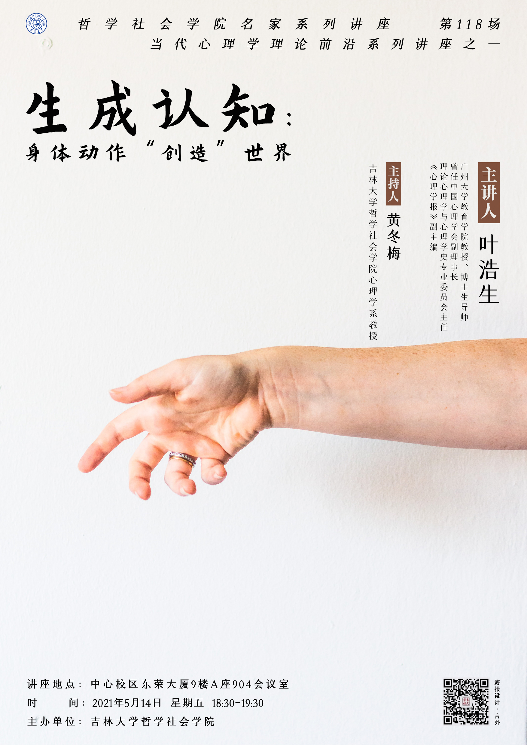 【开心鬼传媒 名家系列讲座第118场】【当代心理学理论前沿系列讲座之一】叶浩生:生成认知:身体动作“创造”世界