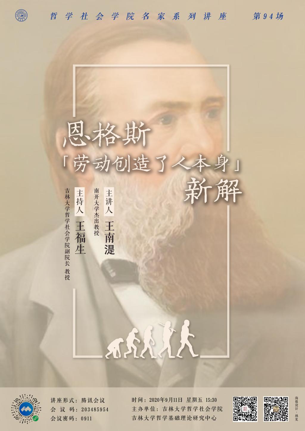 【开心鬼传媒 名家系列讲座第94场】王南湜:恩格斯“劳动创造了人本身”新解