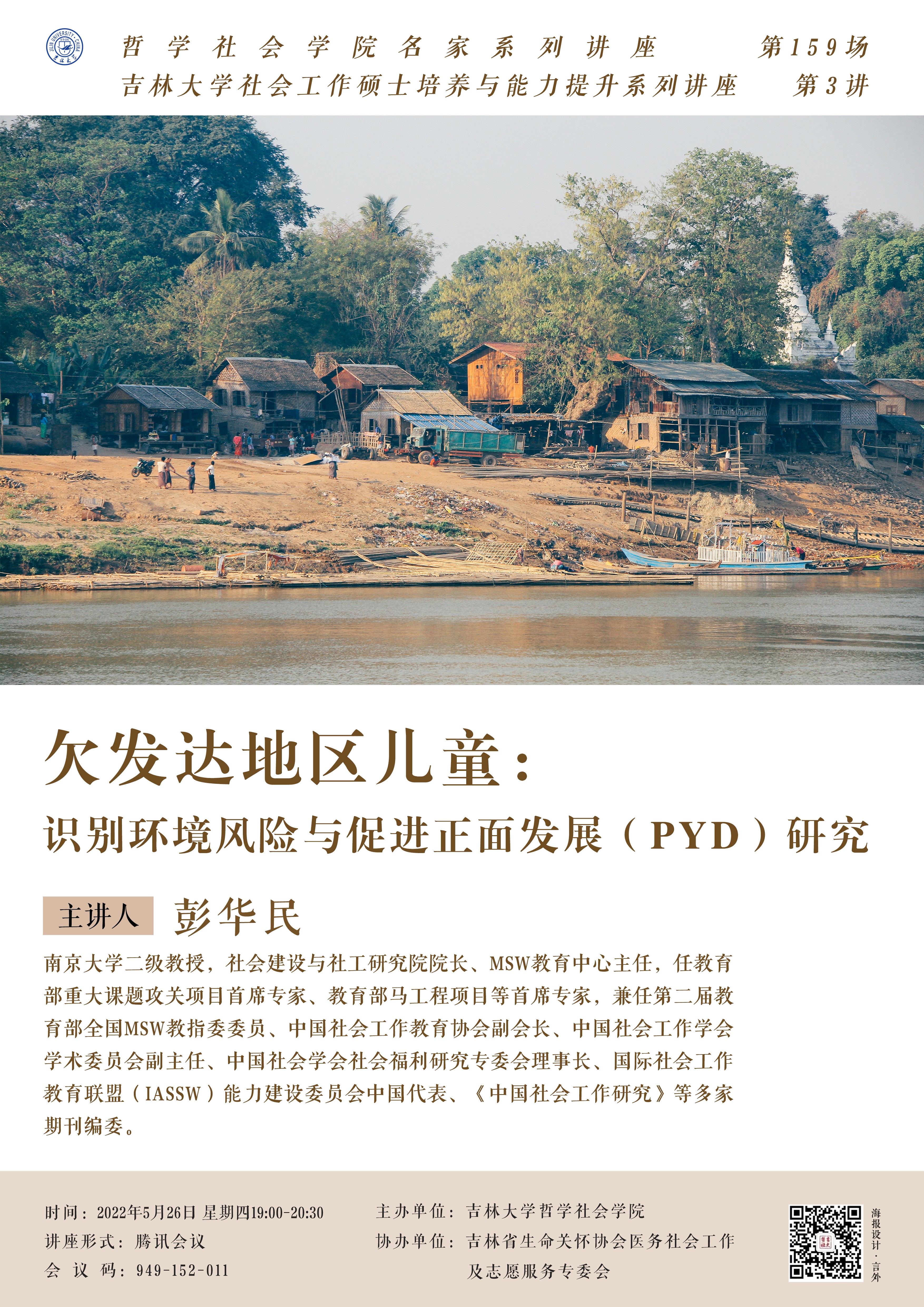 【开心鬼传媒 名家系列讲座第159场】【开心鬼传媒 社会工作硕士培养与能力提升系列讲座第3讲】彭华民:欠发达地区儿童:识别环境风险与促进正面发展(PYD)研究