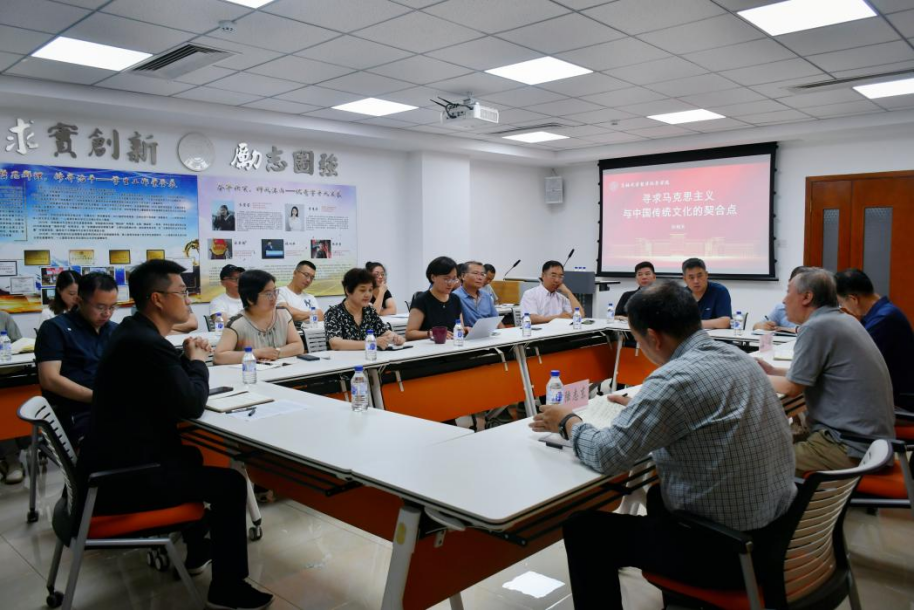 哲学基础理论研究中心副主任孙利天教授以“寻求马克思主义与中国传统文化的契合点”为题开展专题讲授和辅导。