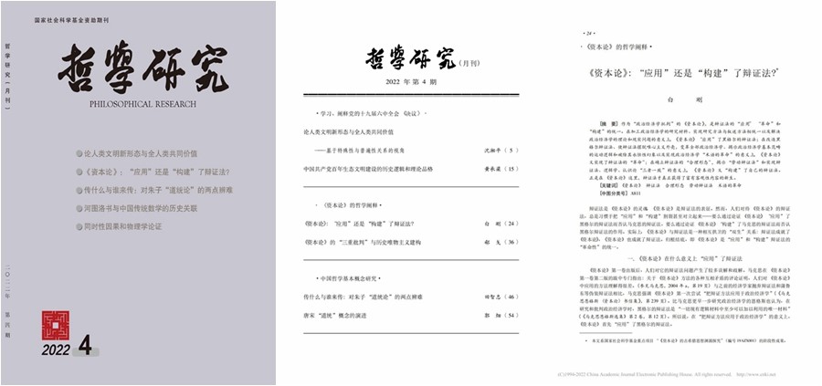 白刚教授在《哲学研究》2022年第4期发表题为《<资本论>:“应用”还是“构建”了辩证法?》的文章。