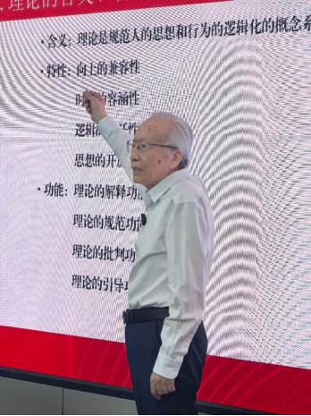 孙正聿教授结合自己数十年教学和科研的经验,认为理论研究最重要的是形成独特的理论思维,而理论思维的训练最重要的是要形成五种能力,亦即捕捉、发现和提出问题的理论洞察力;总结、凝炼和升华问题的理论概括力;激活、重组和创新问题的理论想象力;分析、阐释和论证问题的理论思辨力;拓展、深化和解决问题的理论思想力。理论研究要有四个“真”字,也就是“真诚:抑制不住的渴望;真实:滴水穿石的积累;真切:举重若轻的洞见;真理:永无止境的追求”,同时理论研究还要有“文献积累:读出好处,得道于心;思想积累:找出问题,发明于心;生活积累:重在体悟,活化于心”。与此同时,理论研究要牢记“四个不是”:名称不是概念,罗列不是概括,叙述不是论证,解说不是思想。孙正聿教授指出,理论研究在今天的使命就是要提炼出有学理性的新理论,概括出有规律性的新实践,用中国道理总结好中国经验,把中国经验提升为中国理论,进而建构中国自主知识体系。