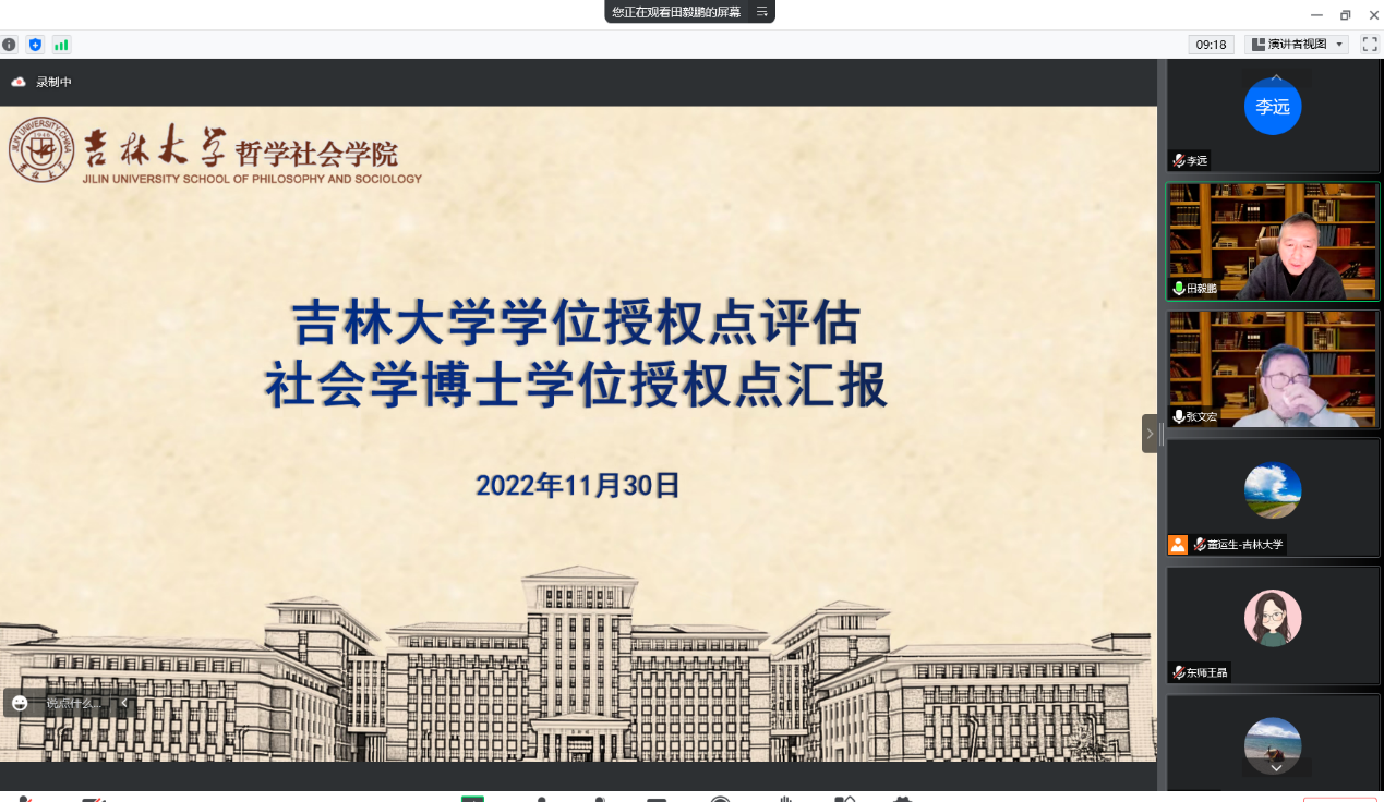 首先,田毅鹏院长代表社会学学位授权点向评估专家组做了详细的学位授权点建设工作汇报。他围绕培养目标与学位标准、学位授权点基本条件、人才培养方式与成效、服务社会经济发展、问题与提升计划展开汇报,系统梳理和总结了社会学学位授权点近五年的工作做法和取得成效,并指出未来将在提高国内外的学术地位和学术影响、提高教学水平和科研能力、发挥学科带头人的关键作用、加强学术梯队建设、加强学生的科学研究和实践训练、加大招生宣传力度等方面提升学位授权点的质量。
