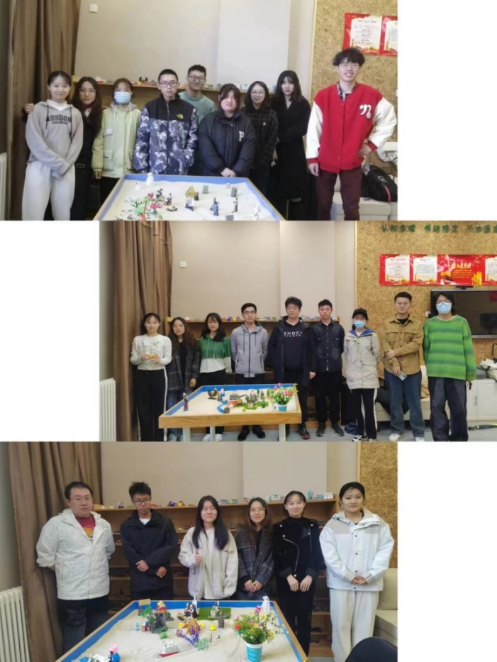 创作结束后,同学们就创作中的想法和感受进行了真诚的分享与讨论,于有形之中回归于心灵,在沟通交流中逐步协调整合,共同完成作品的命名,在彼此的交流和讨论中进一步表达自我,了解自我,觉察自我的人际关系模式。最后,同学们对活动中的感受和收获进行了总结和分享,活动在轻松愉快的氛围中圆满落幕。