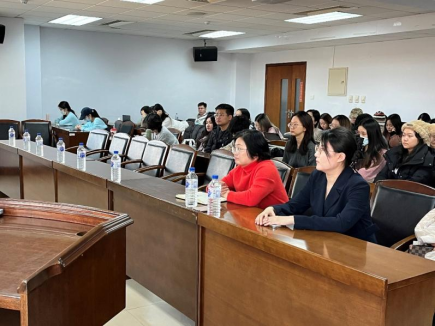 就业创业指导与服务中心副主任冯彦杰老师举办就业指导讲座,学院党委副书记赵洁老师主持会议,研究生辅导员于洋和部分研究生参加讲座。