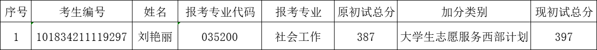 “大学生志愿服务西部计划政策”加分规定,初试总分加10分,现予以公示!