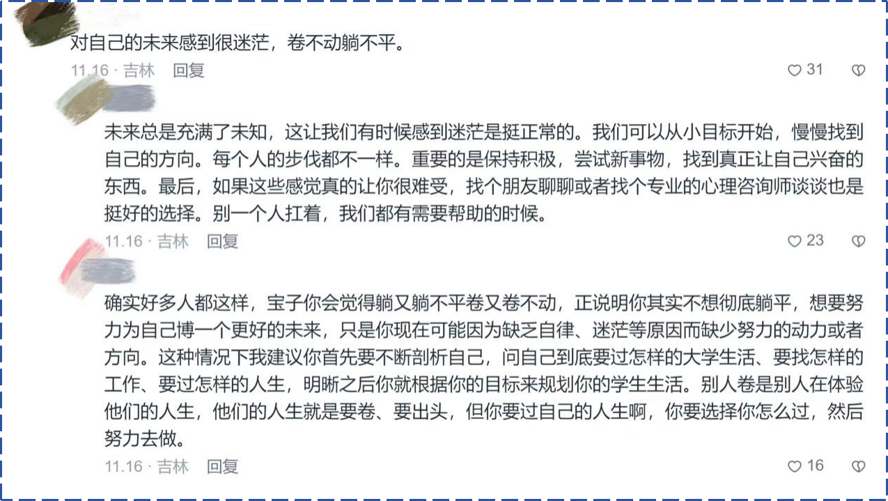 此次活动以线上共享文档为媒介通过匿名参加的方式开展,打破了地域限制,给同学们提供相对安全自由的倾诉空间。一方面,同学们可以作为倾诉者分享自己的困惑与心事,通过匿名发声舒缓压力负担、宣泄负面情绪;另一方面,同学们也可以成为倾听者,用自身经验和暖心话语解答他人遇到的难题。每一次分享都是一次心灵的释放,每一次倾听都是一次心灵的触碰,大家在陌生人的互助之间找到了共鸣,收获了友谊和支持。最后,此次活动评选出了一、二、三等奖和参与奖,并为大家分发了精美礼品。