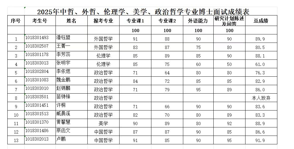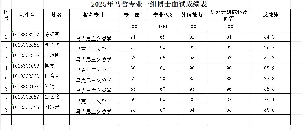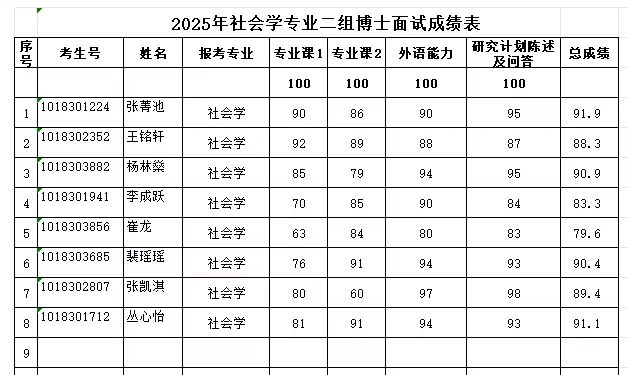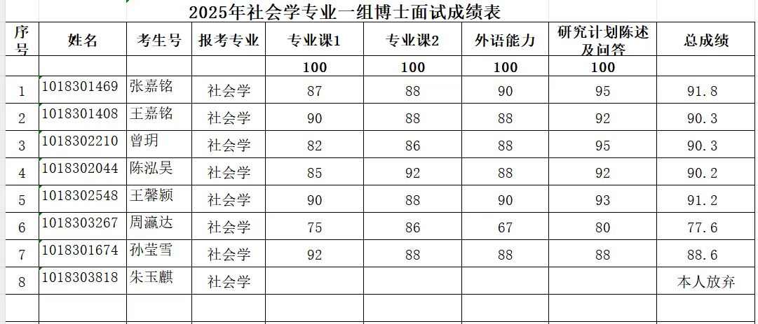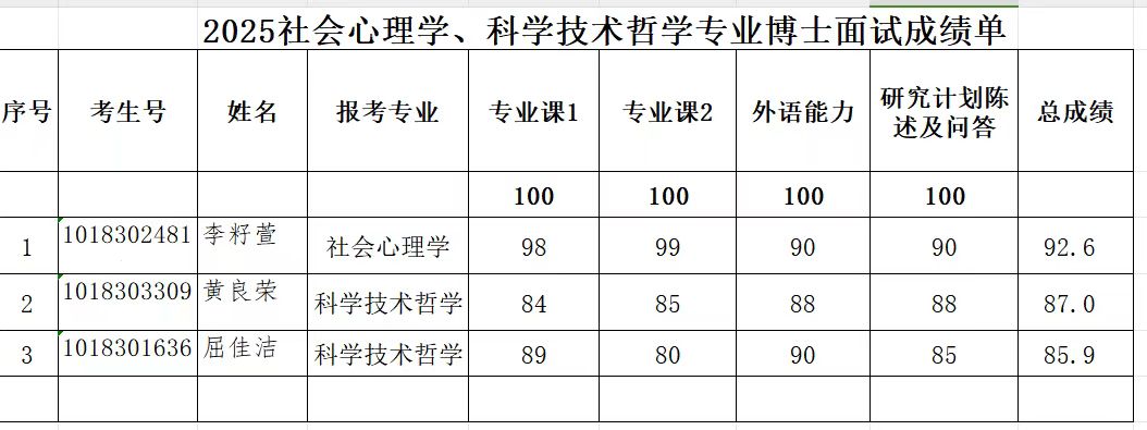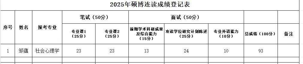 2025年硕博连读及博士申请考核复试成绩参见图片