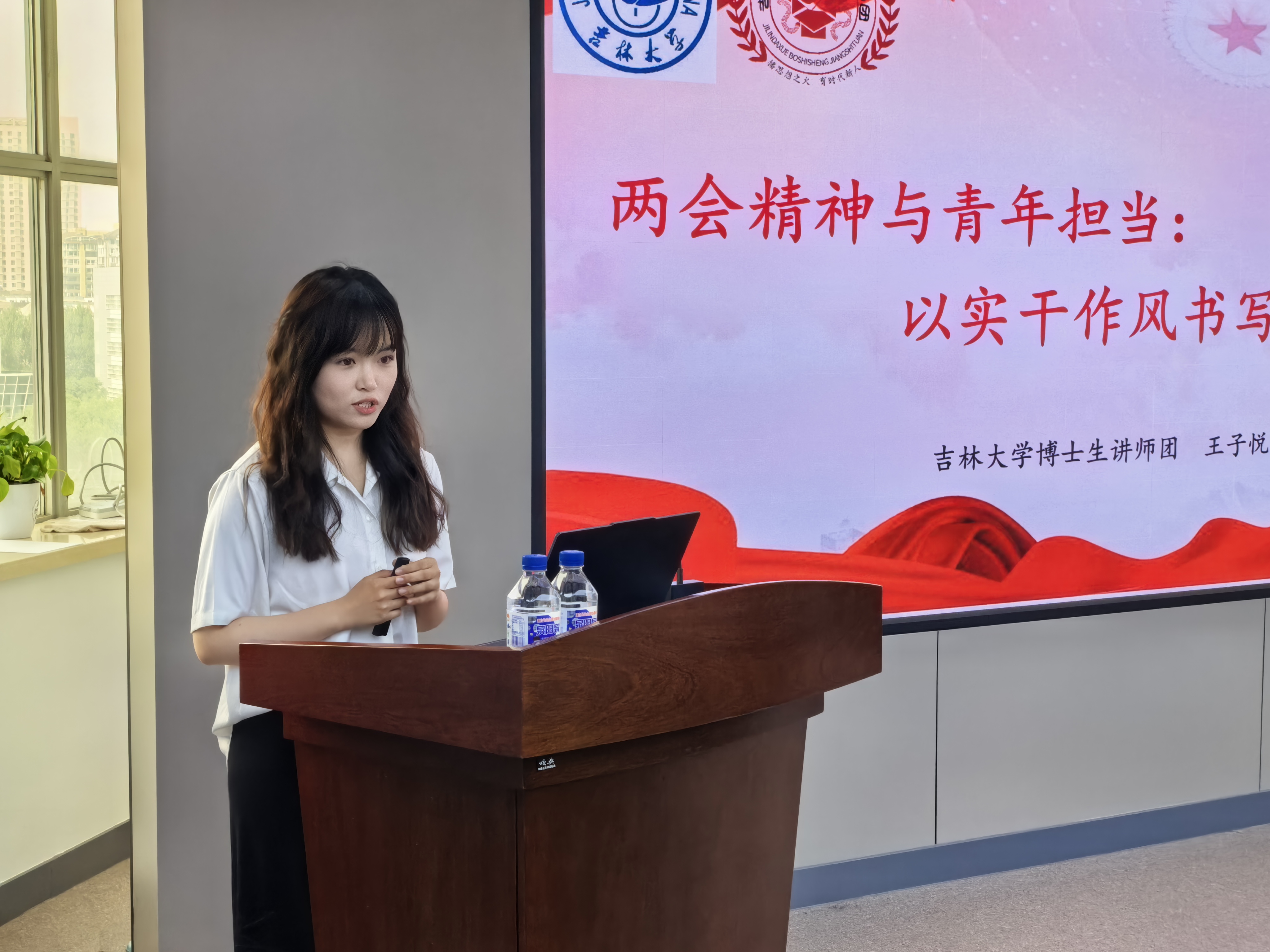 博士生讲师团成员、2024级政治哲学博士研究生王子悦同学,在东荣大厦904会议室进行题为“两会精神与青年担当:以实干作风书写新时代答卷”的主题宣讲。此次活动由学院辅导员、博士学生第一党支部书记于洋主持,全体学生党员参与学习。