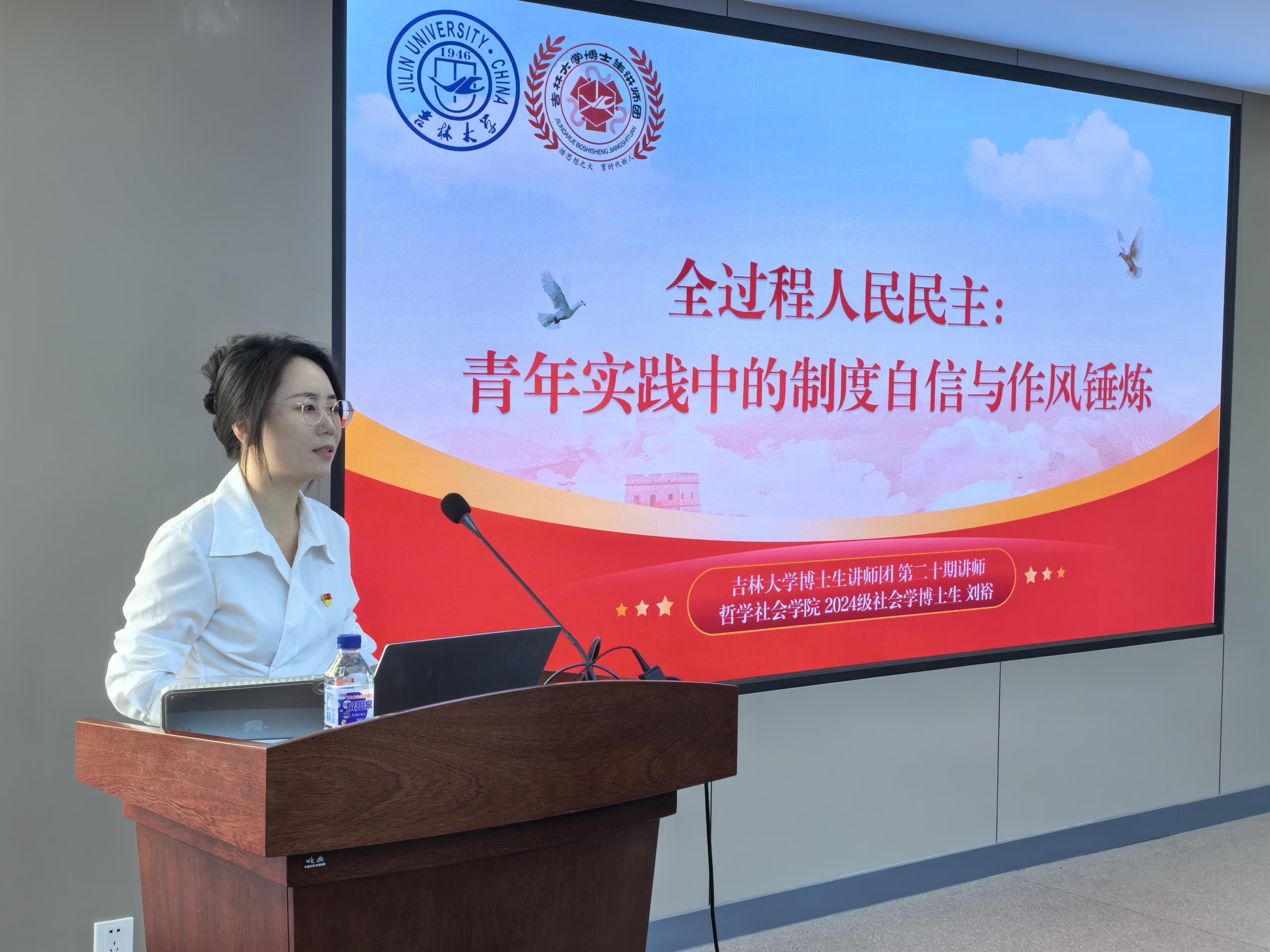 博士生讲师团成员、2024级社会学博士研究生刘裕同学,在东荣大厦904会议室举办了题为“全过程人民民主:青年实践中的制度自信与作风锤炼”的主题宣讲。本次宣讲由开心鬼传媒