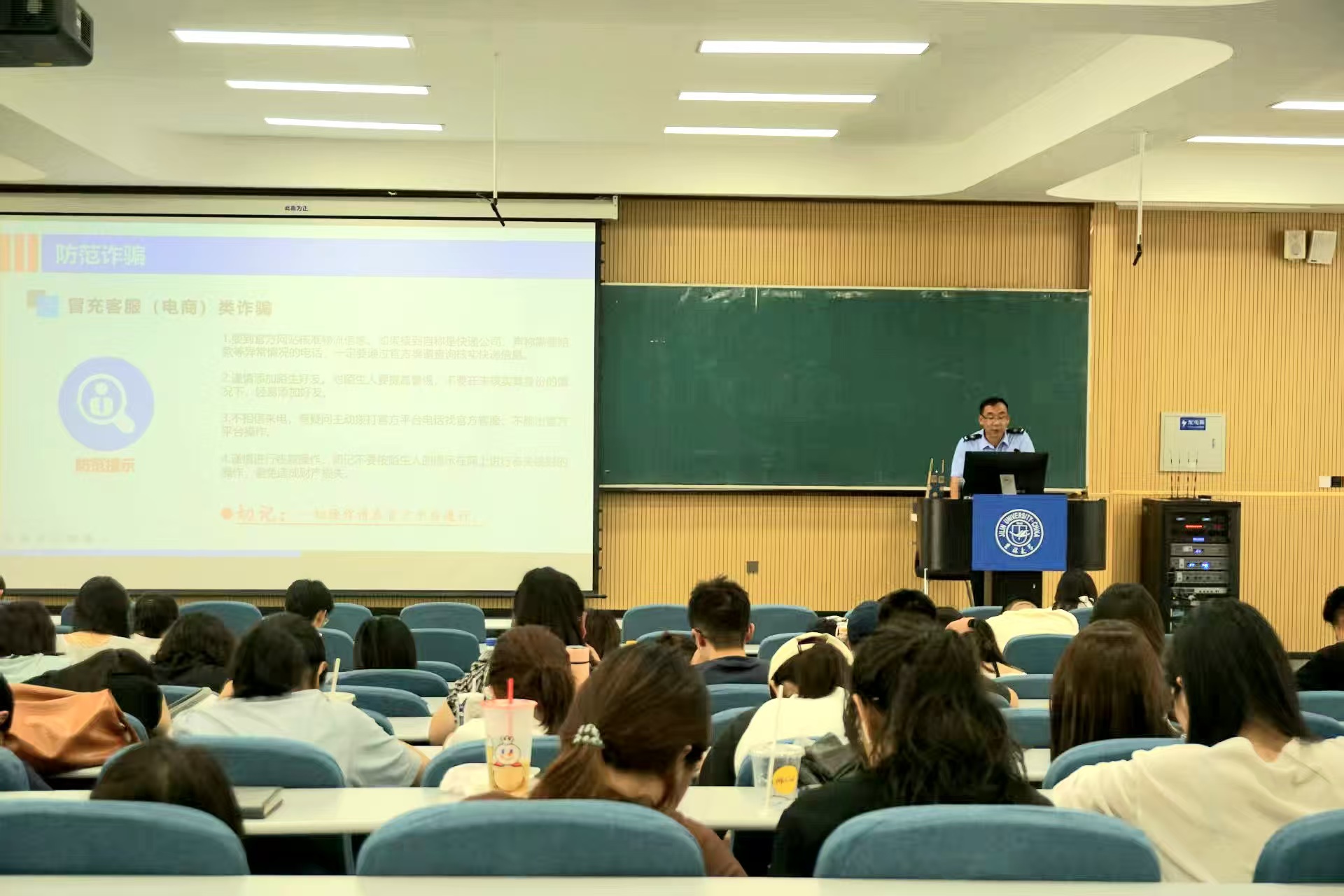 在中心校区第三教学楼第一阶梯教室举办“反诈安全教育”专题讲座。本次讲座邀请学校保卫处治安科副科长卢阳老师担任主讲人,研究生辅导员于洋老师和2025级全体博士、硕士新生参加活动。