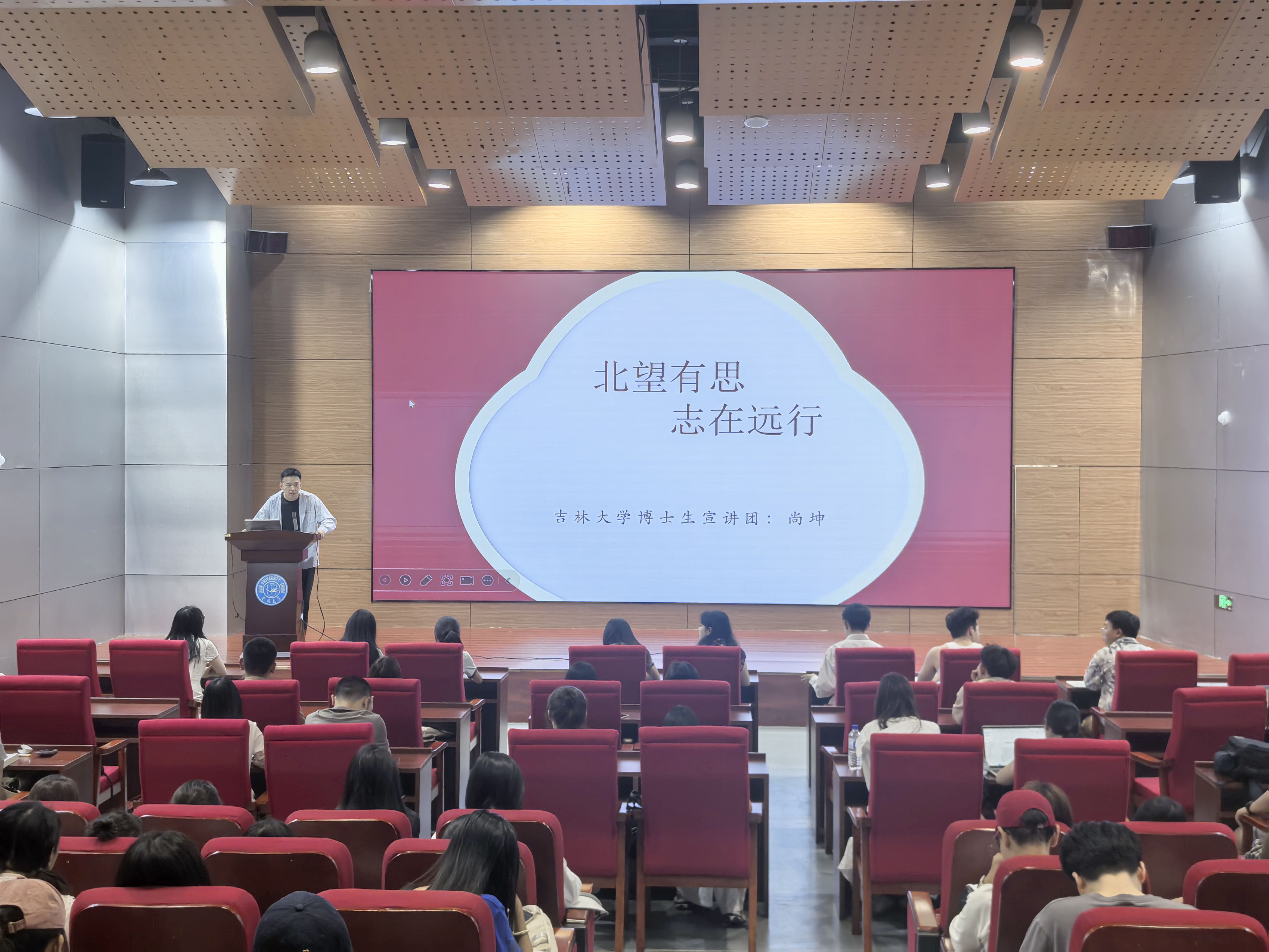 博士生讲师团成员尚坤同学主讲,研究生辅导员于洋老师主持,2025级全体硕士新生参加活动。