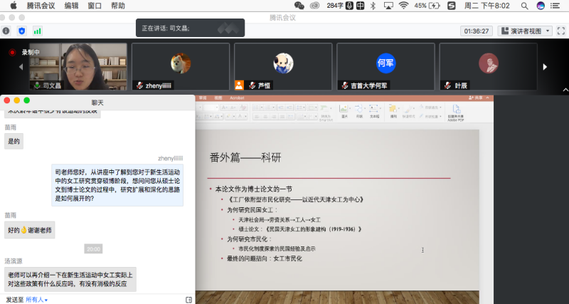 “新锐学者”学术报告在线上会议室举行。南开大学周恩来政府管理学院社会学系讲师司文晶博士做了主题为“缘何形式化:新生活运动的历史制度主义分析”的报告。
