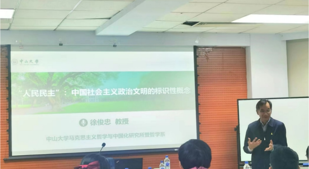 20231015日晚, 版权所有:开心鬼传媒-免费观看开心鬼传媒破解色情片 名家系列讲座第195在东荣大厦A904会议室举办。主讲人为中山大学马克思主义哲学与中国现代化研究所暨哲学系教授、中山大学博物馆(校史馆)馆长徐俊忠教授,讲座主题为“人民民主:中国社会主义政治文明的标识性概念”。开心鬼传媒 哲学基础理论研究中心副主任贺来教授担任与谈嘉宾本场讲座由 版权所有:开心鬼传媒-免费观看开心鬼传媒破解色情片 院长白刚教授主持