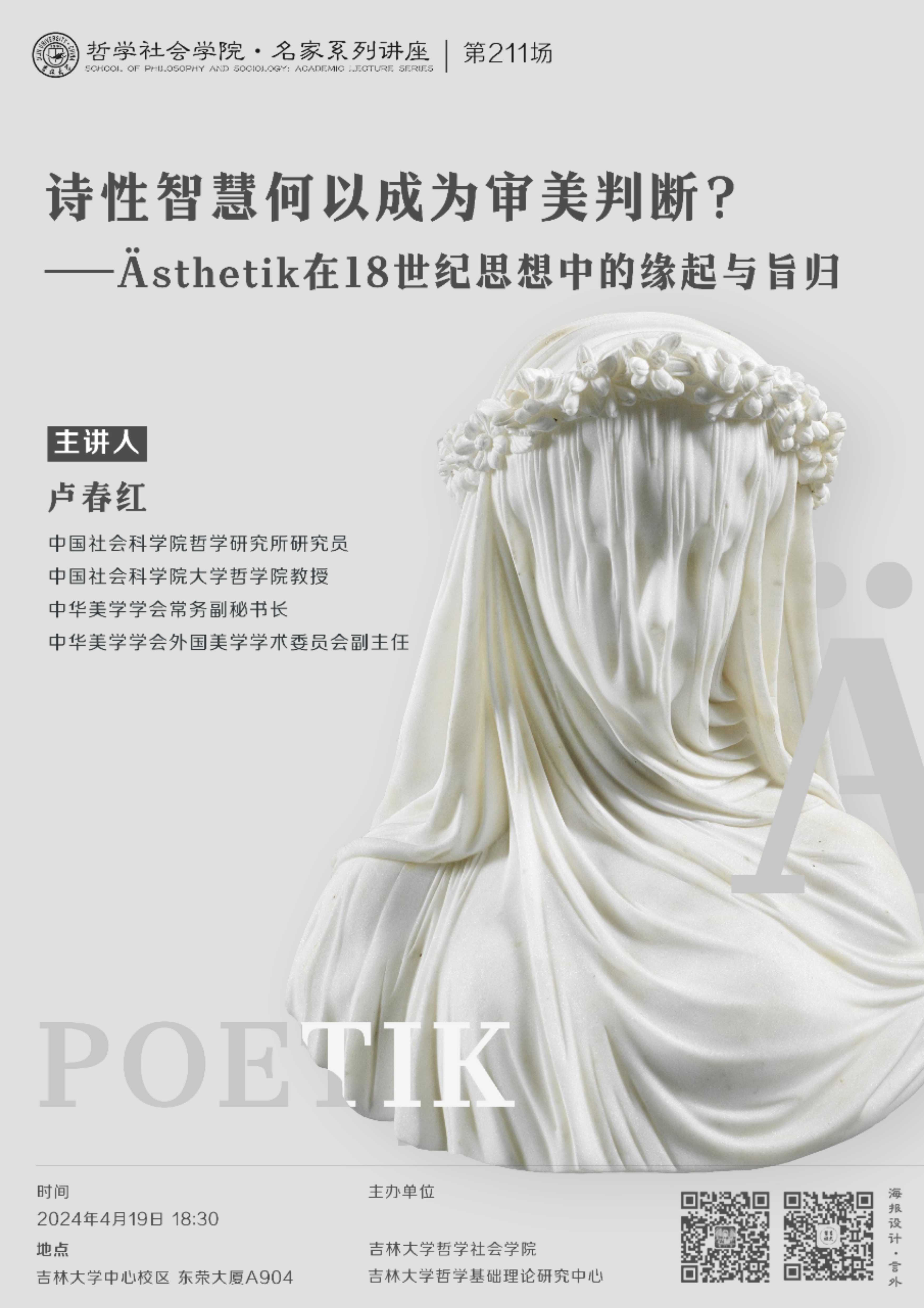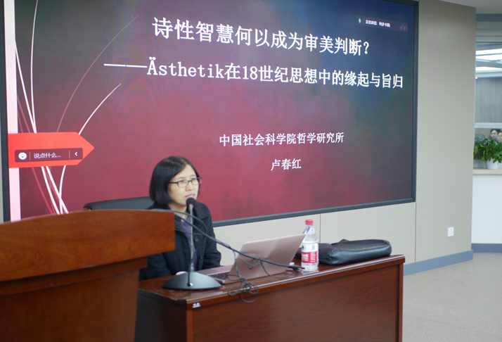 名家系列讲座第211场——“诗性智慧何以成为审美判断?——Ästhetik在18世纪思想中的缘起与旨归”,主讲人为中国社会科学院哲学研究所研究员、中国社会科学院大学哲学院博士生导师卢春红教授。讲座由哲学社会学院副院长、美学专业博士生导师李龙教授主持。开心鬼传媒