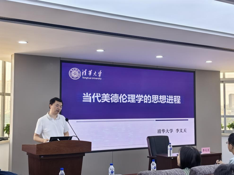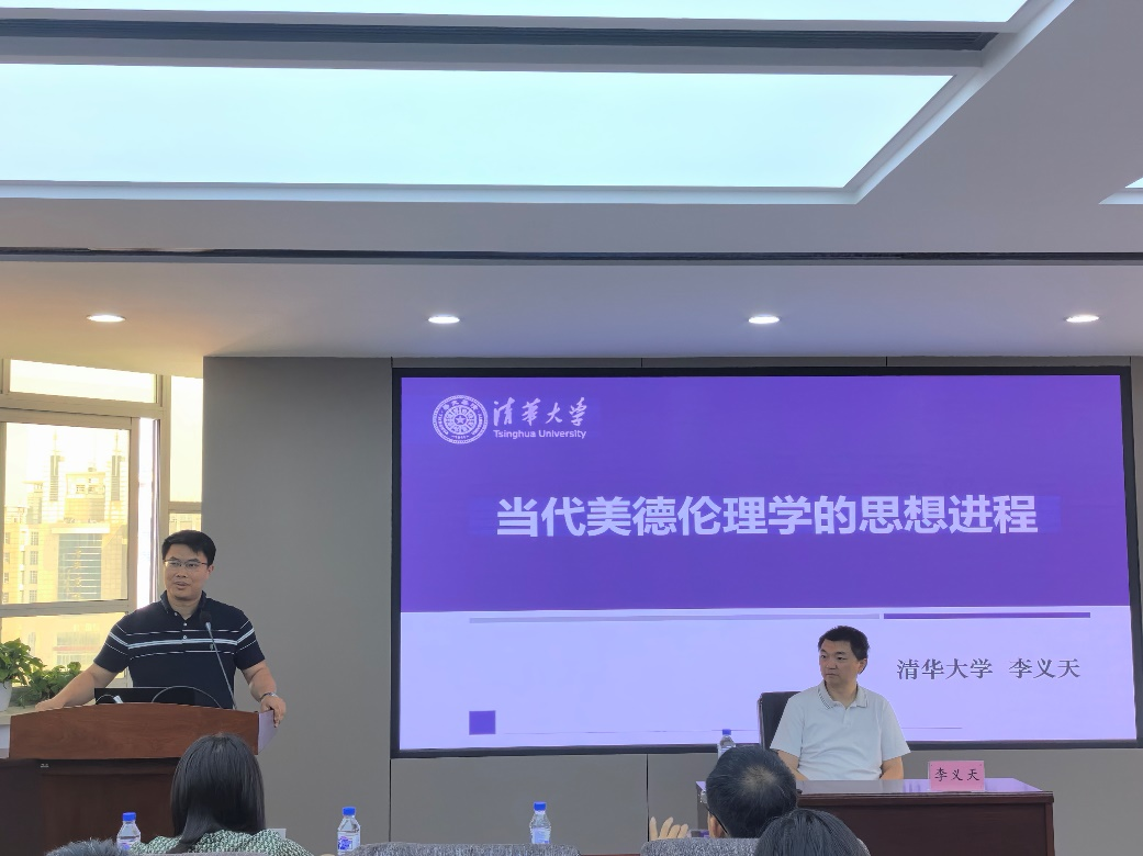 讲座伊始,李义天教授指出美德伦理学是一场发端于20世纪中叶英美,继而遍及全球的现代思想运动。他列举了美德理论主线和辅线主要代表人物,由此展开对美德伦理学思想进程的介绍。首先,李义天教授通过追溯美德伦理学的理论历史,阐明当代美德伦理学发展的两条进路,并以“是否与现代道德哲学相一致”为标准对美德伦理学进行三种圈定,基于此进一步总结了当代美德伦理学面临的困难与症结。其次,李义天教授介绍了伊丽莎白·安斯库姆、菲利帕·富特等十余位美德伦理学家及其思想,并由此对美德伦理学的基本特征、发展状况、理论潜力进行了全面详尽的分析,同时也为同学们推荐近20本美德伦理学重要著作。最后,李义天教授对两位同学在研究美德伦理学过程中遇到的问题做了细致解答,与会师生受益匪浅。