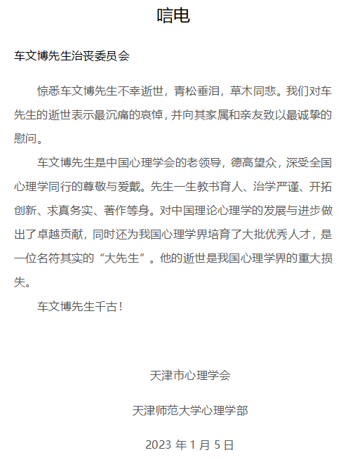 下一条:中国心理学会理论心理学与心理学史专业委员会唁电