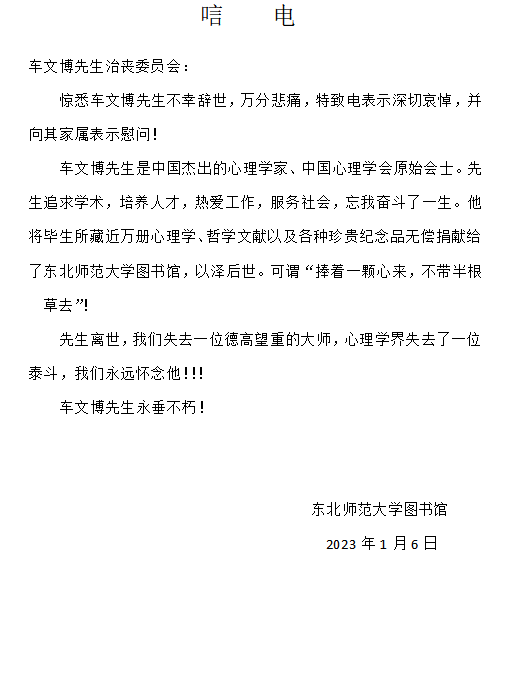 东北师范大学图书馆唁电
